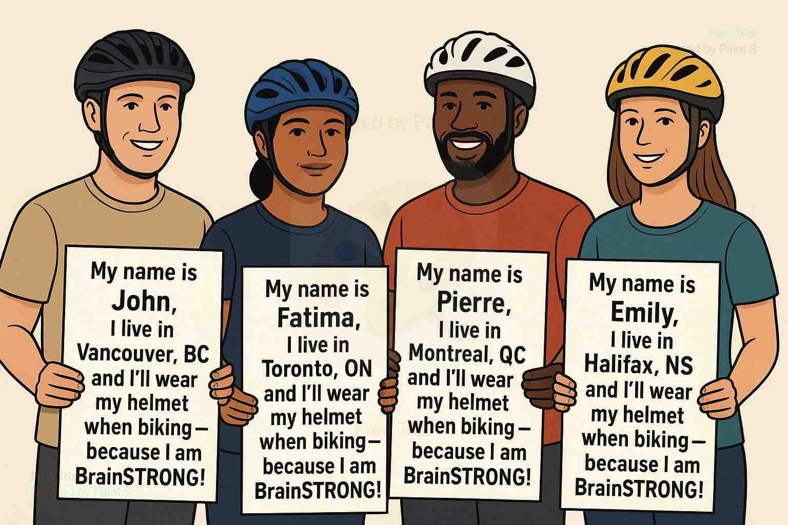 “My name is , I live in <city, province>, and I wear my helmet when biking because I am BrainSTRONG!”